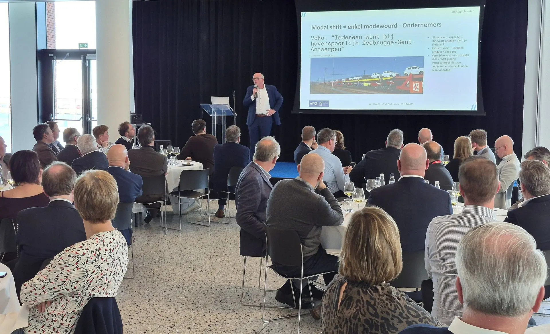 Met een grote opkomst tijdens de APZI Port Lunch van 5 december 2025, waaronder Jacques Vandermeiren (CEO Port of Antwerp-Bruges) en burgemeester Dirk De fauw, werd opnieuw duidelijk hoe belangrijk het thema ‘modal shift’ en de ontwikkeling van spoorinfrastructuur is voor onze haven en de bredere regio.
