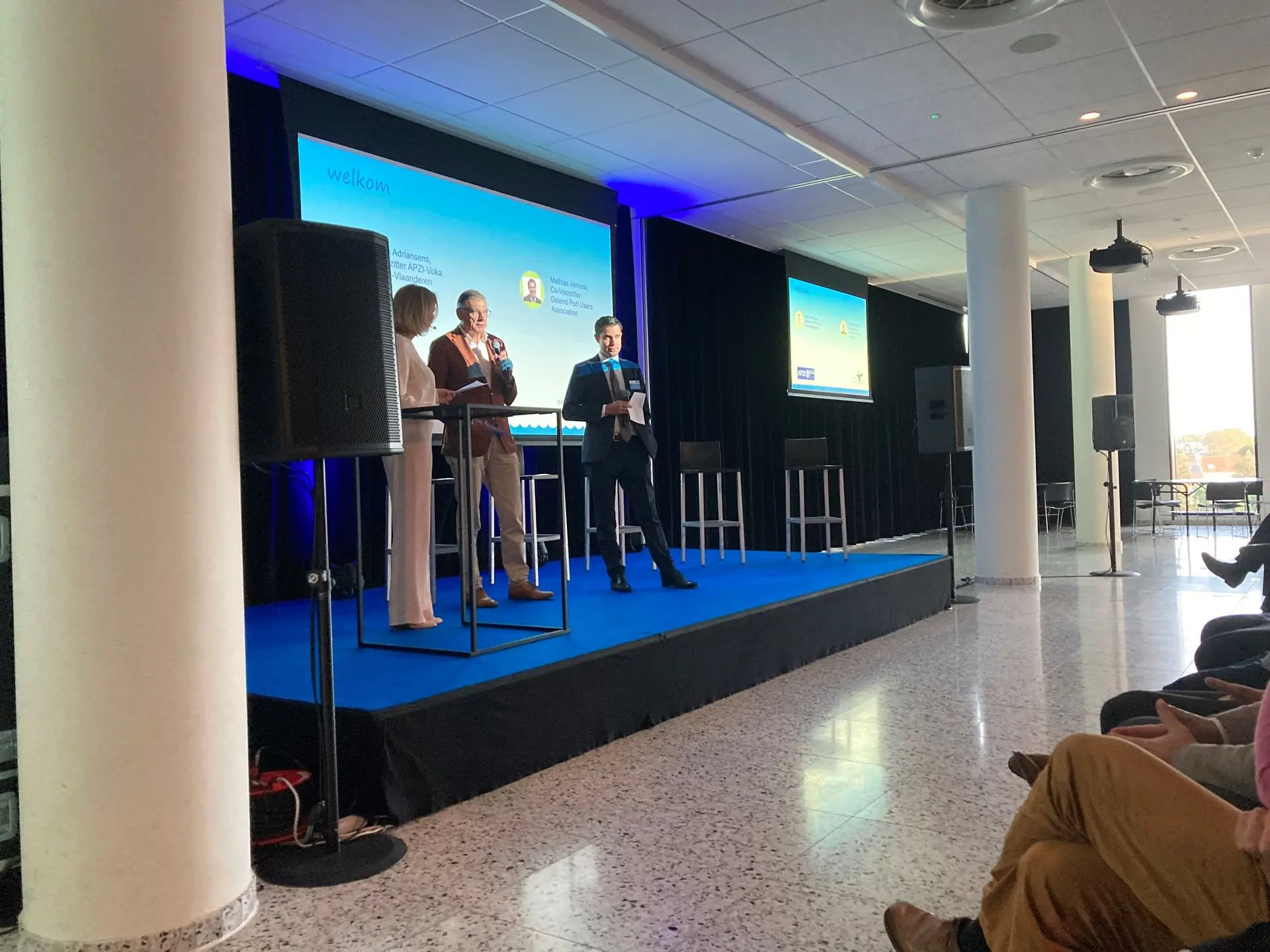 Op donderdag 5 oktober 2023 kwamen havenondernemers uit Zeebrugge en Oostende samen voor de derde editie van het SEAposium. Dit jaar stond het havenevent in het teken van Kustvisie, het onderzoekstraject van de Vlaamse Overheid om onze kust en achterland op lange termijn te beschermen tegen een stijging van de zeespiegel. Alexander D’Hooghe, coördinator van het project, lichtte als keynote spreker de belangrijkste bevindingen van Kustvisie toe en ging hierbij vooral dieper in op de beschermingsmaatregelen en gevolgen voor onze kusthavens. Dit leverde gesprekstof op voor een boeiend debat met verschillende stakeholders uit beide havens.