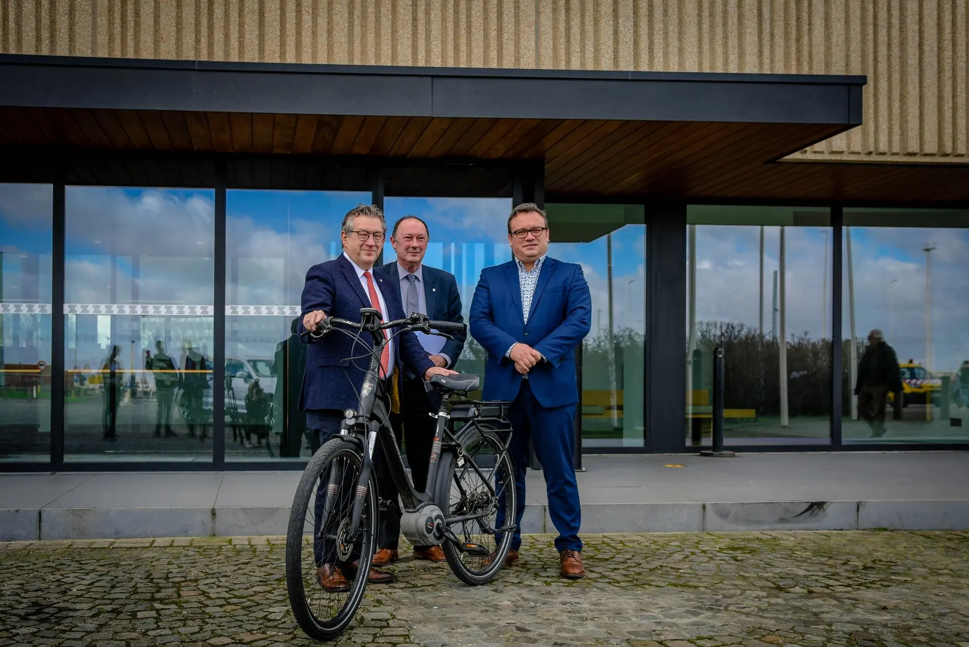 FOTO: v.l.n.r. Dirk De fauw (burgemeester Stad Brugge), Rik Goetinck (CEO ad interim Port of Zeebrugge/MBZ) en Jurgen Vanlerberghe (gedeputeerde Provincie West-Vlaanderen)